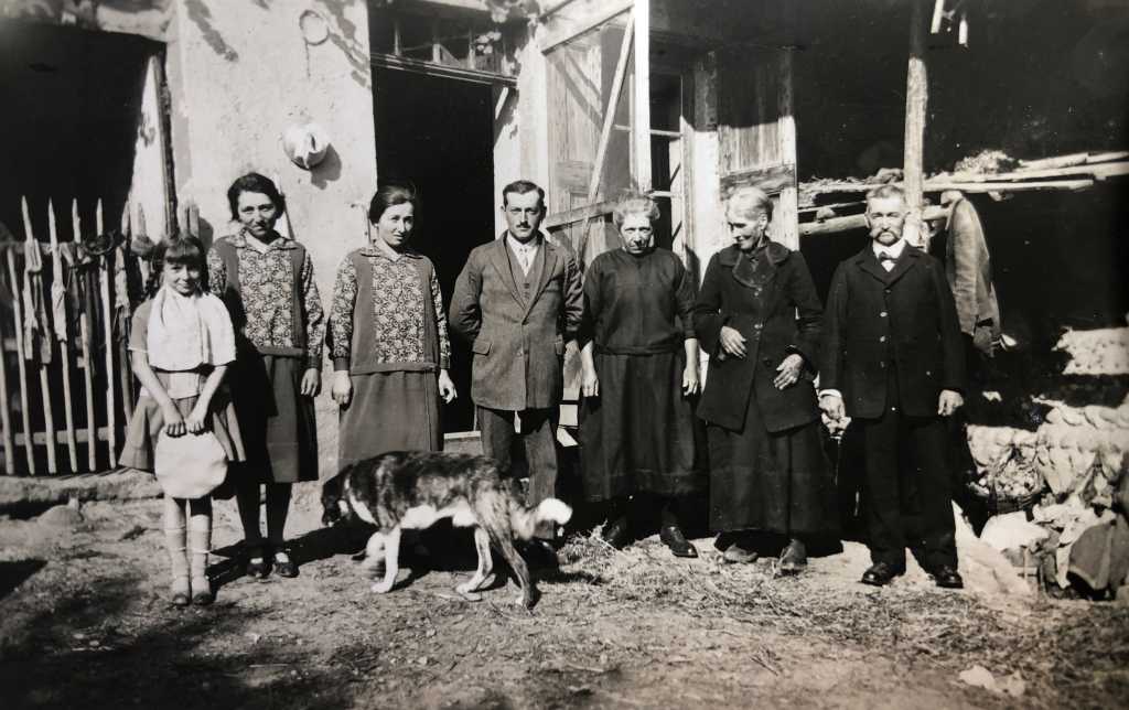 Soeur Augustin (Annette Gallerand pour l’état civil) est présente sur la photo ci-dessous, et également publiée à la page 79 de notre revue N° 1/2023. C’est la deuxième personne en partant de la droite, entourée par Catherine Perroud et Toussaint Valluy.