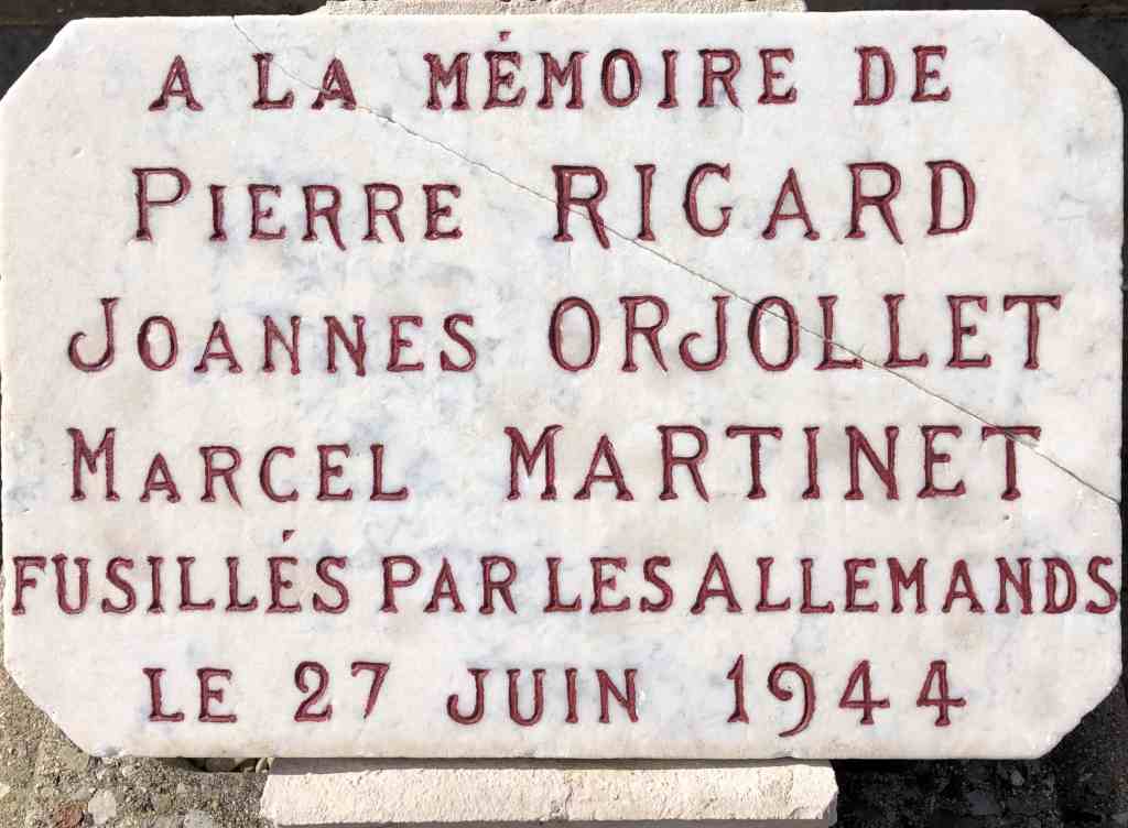 Estrablin Historique apportera sa contribution dans son numéro 2 des Mémoires Estrablinoises* à paraître mi juin 2024, en revenant sur l’histoire des Martyrs du Suzon. Nous avons retrouvé dans un document datant de 1946, un témoignage de ce qui s’est passé à Meyssiez le 27 juin 1944 et s’est achevé aux Cotes d’Arey. A la fin de l’article, il est rappelé l’existence d’une plaque commémorative à Meyssiez, lieu de capture des victimes estrablinoises de ce massacre. M Rémy Perrot, président de la FNACA d’Estrablin a oeuvré pour que celle-ci soit remise en état. La photo ci-dessous a été prise en juillet 2024 après le nettoyage qui permet de lire à nouveau les noms des fusillés.