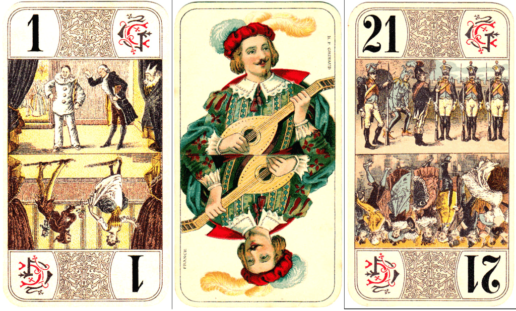Au XVIIIème siècle, les cartes du jeu de tarot étaient associées à la pratique de la cartomancie et utilisées depuis pour le tarot divinatoire. Les cartes anciennes à enseignes italiennes sont en général privilégiées pour cette utilisation.