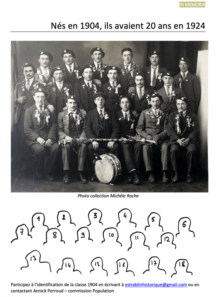 Aidez nous à identifier les conscrits de 1924 (nés en 1904) sur la photo ci dessous que vous retrouverez dans le numéro 2 toujours disponible à la vente N’hésitez pas à ajouter vos informations en commentaires.