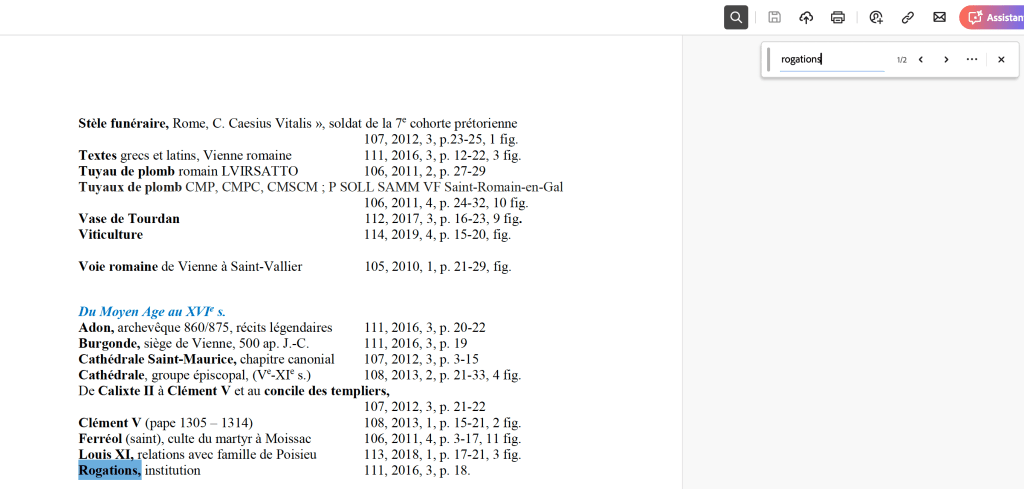 Après avoir télécharger l’index des tables des Bulletins des Amis de Vienne sur votre ordinateur, vous pourrez utiliser la fonctionnalité de recherche textuelle .