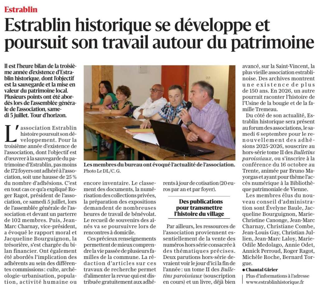 Merci à tous pour votre participation massive à la troisième assemblée générale d’Estrablin Historique. Si vous n’avez pas encore répondu à l’enquête de satisfaction, vous pouvez le faire jusqu’au 6 septembre, date du forum en cliquant sur le lien : enquête.