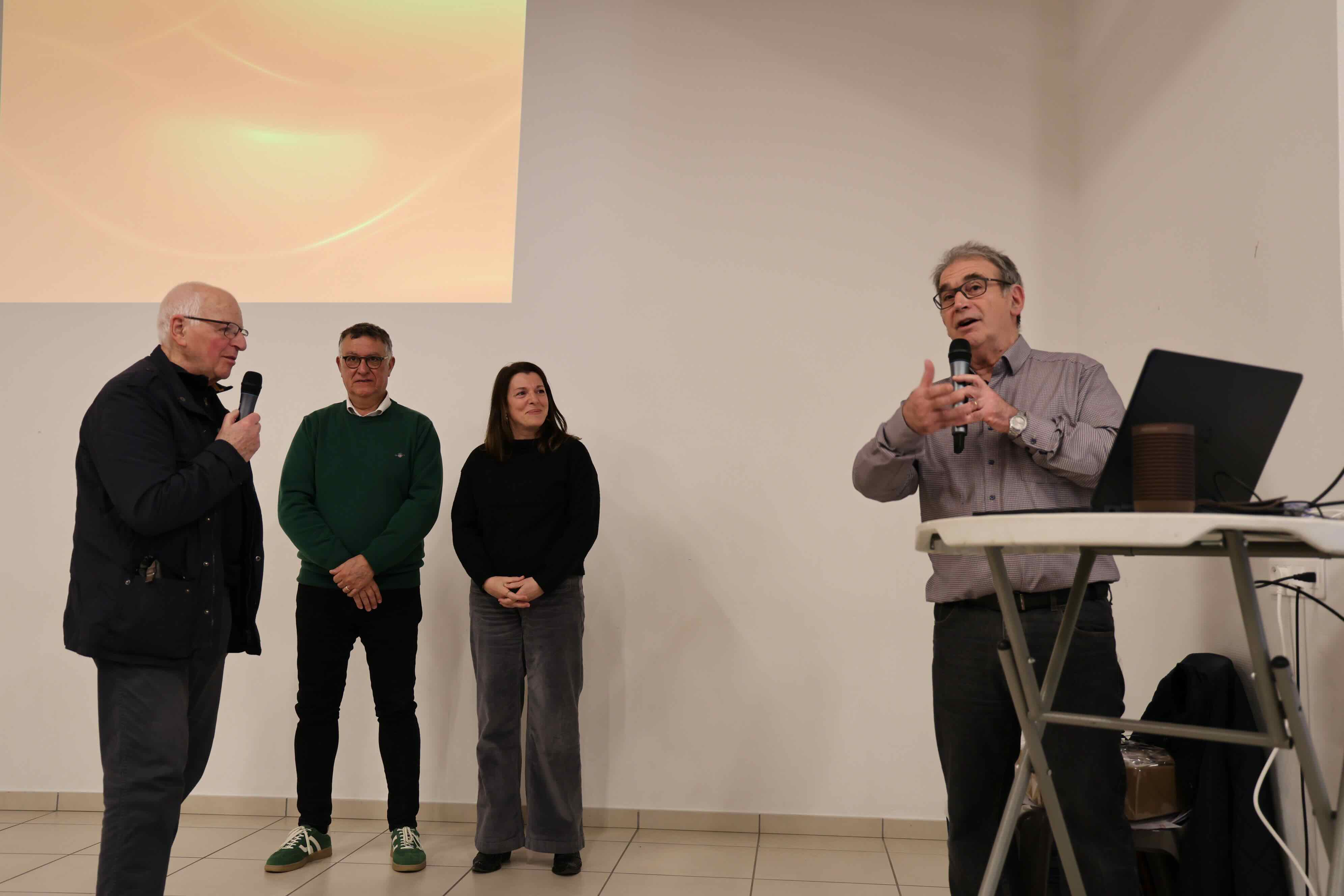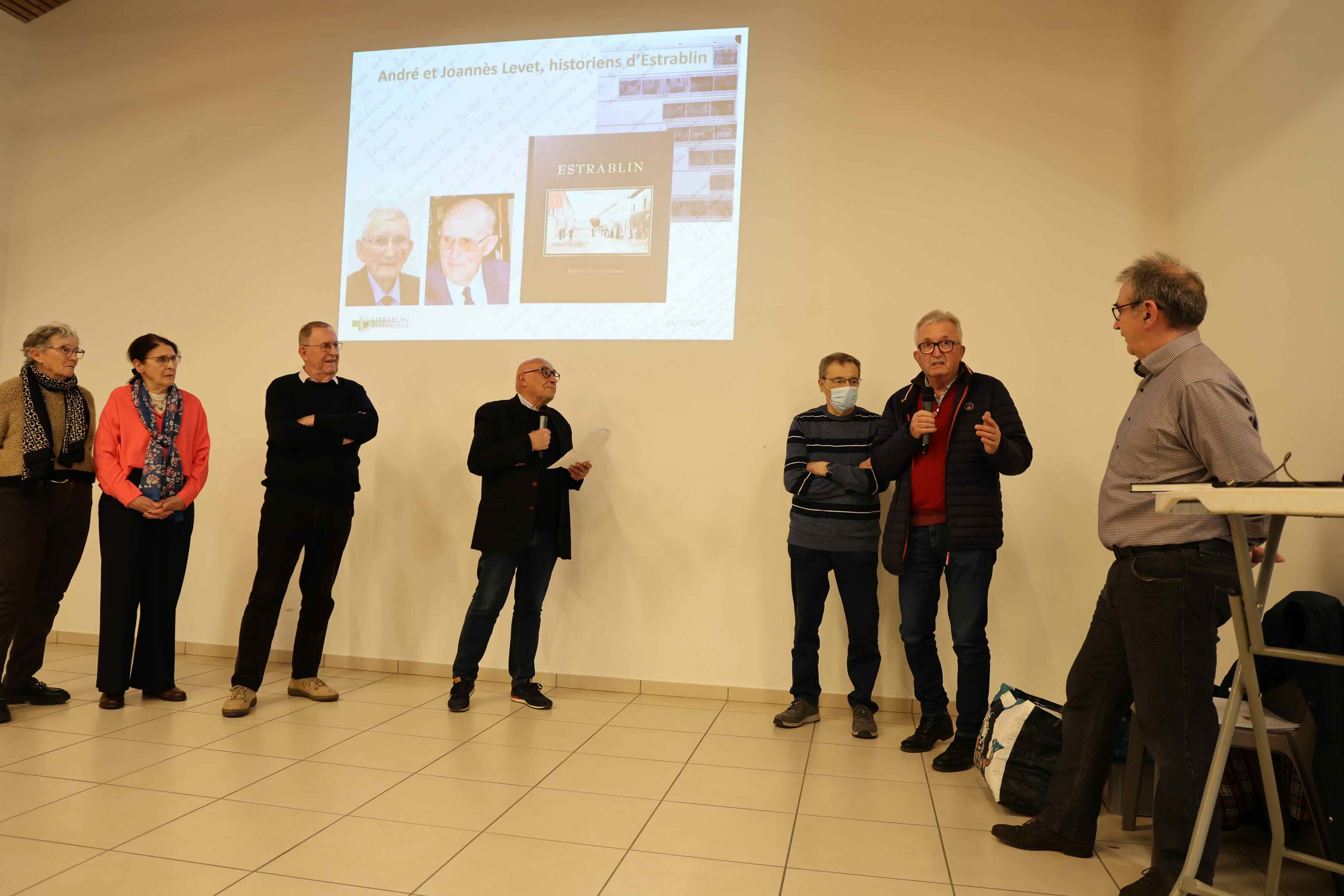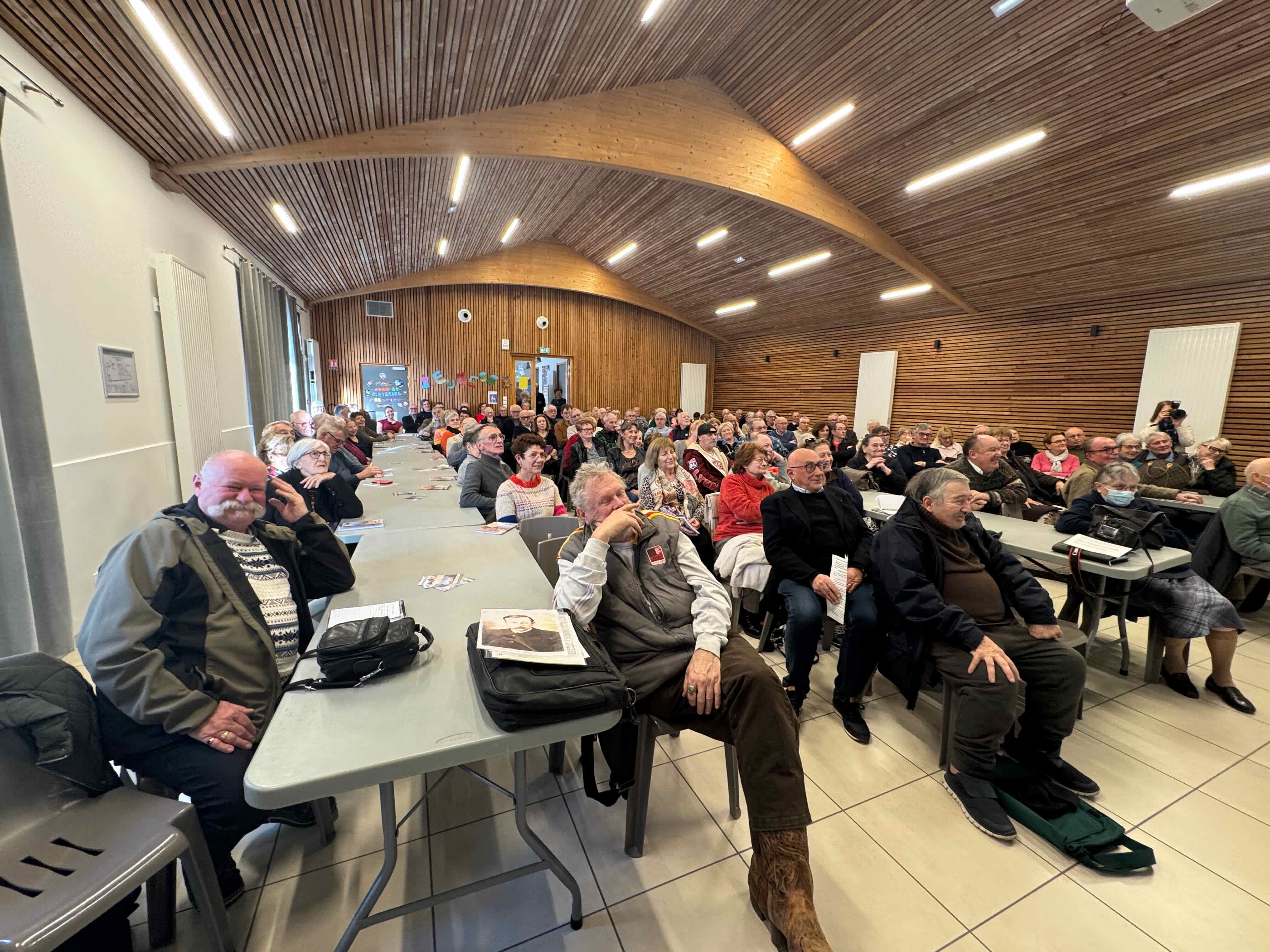Près de 150 personnes ont assisté à cette réunion. Outre la remise de la revue N°5/2026 aux membres de l’association (les absents la recevront d’ici la fin du mois de janvier), c’était l’occasion de présenter les travaux en cours, les projets, mais aussi de remercier les nombreux donateurs, et en particulier les descendants de Joannès et André Levet, qui remettaient à Roger Ragot un nouveau lot d’archives de ces historiens d’Estrablin.